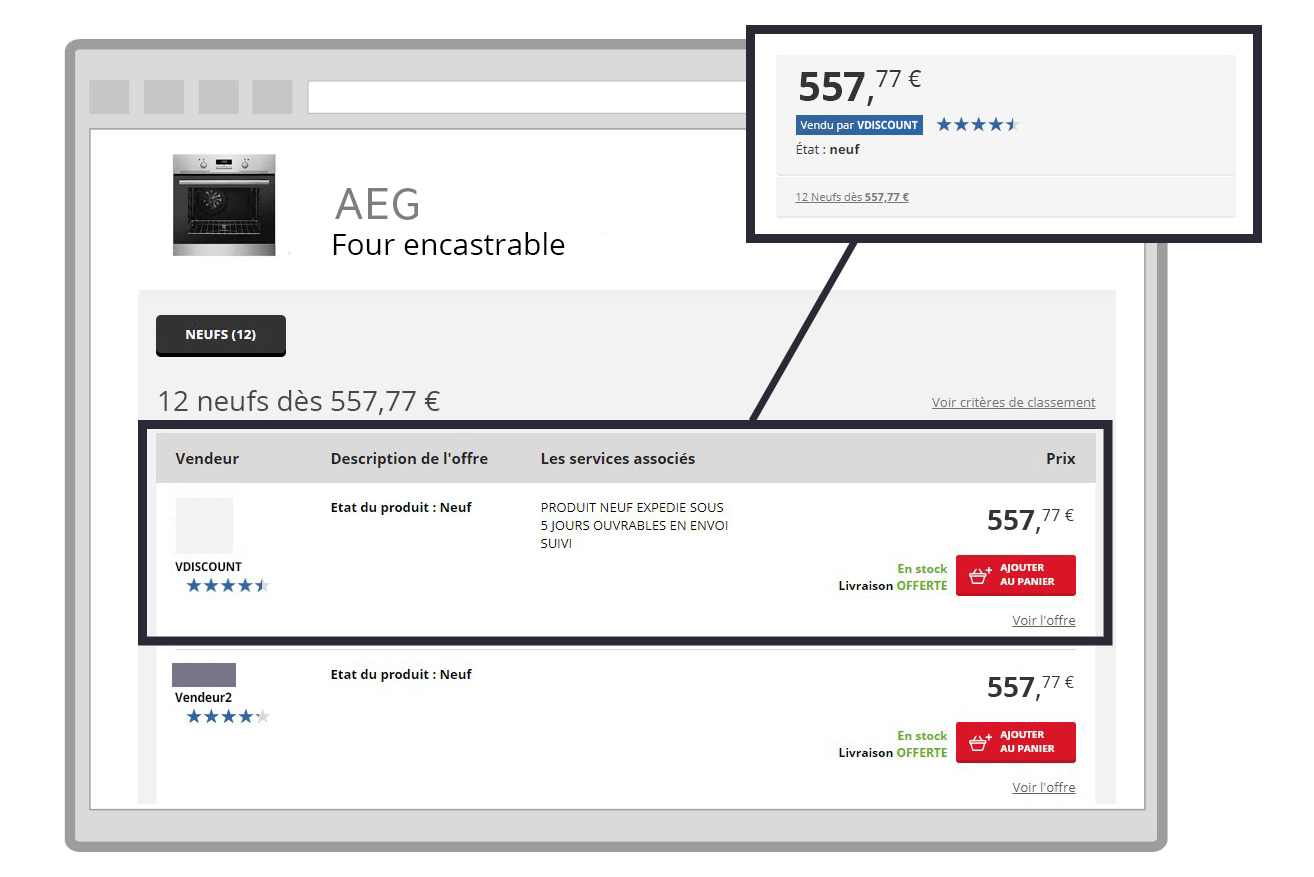 • Une Marketplace vous propose une sélection de vendeurs qui disposent de la référence recherchée